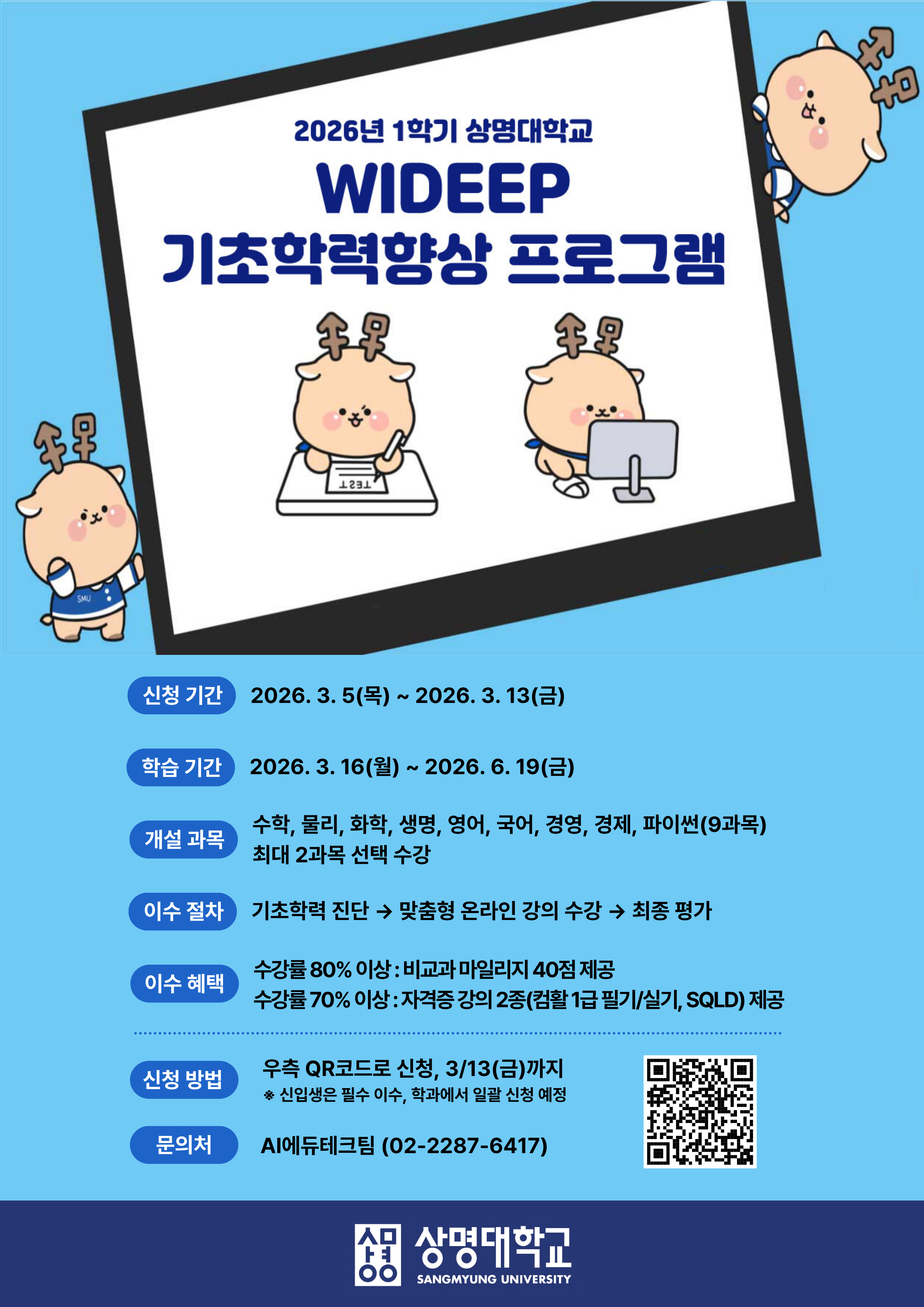 - [AI에듀테크팀] 2026학년도 제1학기 WIDEEP 기초학력향상 비교과프로그램 일정 및 참여 방법 안내
